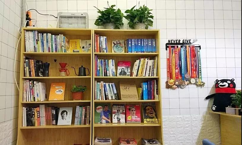 山东德州有一家12平米的社区咖啡馆—蓝莲咖啡,装修很普通,老板在店里放了一个奖牌架,放着他参加马拉松、越野跑和自行车比赛的奖牌,以及一些和名人的合影、签名照。