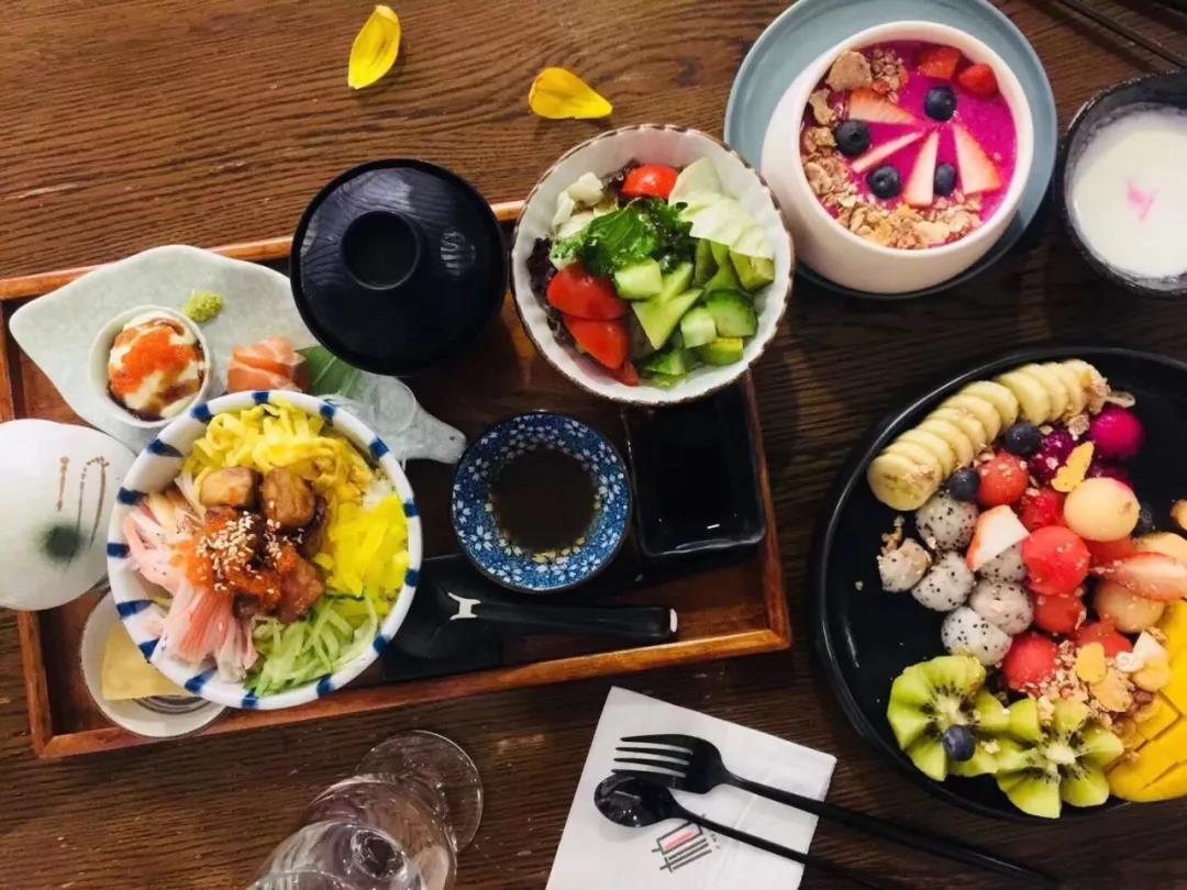 这家店巧妙的地方就在于加餐的品类——日料定食和甜品,以寿司、生鱼片、沙拉、味增汤、土豆泥等这些组合起来的套餐。