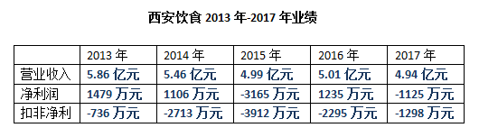 笔者发现,2013年以来,西安饮食已经连续5年扣非亏损。