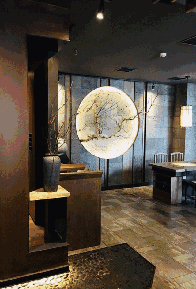 店内更是一步一景、意境悠远。原石和木色、绢灯,组成了呷哺呷哺旗舰店的新中式禅意餐厅环境。