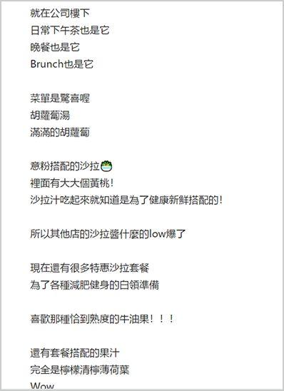 而社交功能实现的基础,在于门店必须成为顾客的生活背景。越来越多的创业者、媒体人和白领,喜欢把“午餐+下午茶+晚餐”的时段放在购物中心里,而轻食餐厅往往成为了这一全时段消费休闲的主选项。