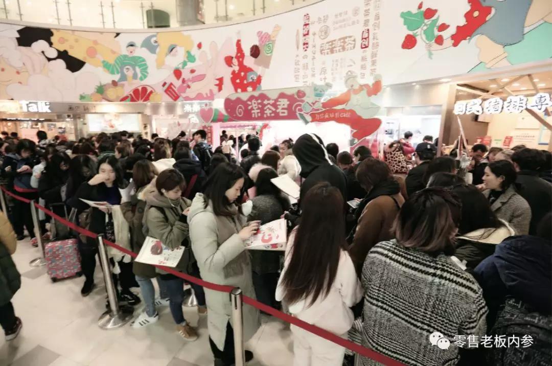 乐乐茶也免不了落俗,从北京第二家店的开业盛景可见一斑:4月18日,乐乐茶“新中关店”正式对外营业,很多消费者慕名前来,甚至为此排队2~3个小时。